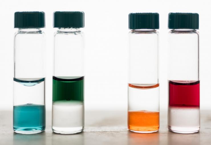 Water as a solvent is much safer, but it can present other challenges. Conjugated polymers are produced in organic solvents and do not inherently dissolve in water. Also, films printed from water-based inks might wash out in the rain or smudge in high humidity.